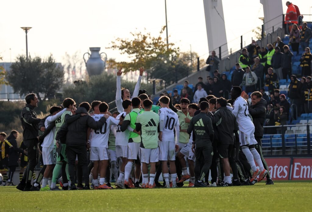 El Real Madrid Castilla celebra la victoria ante el Barakaldo al final del partido